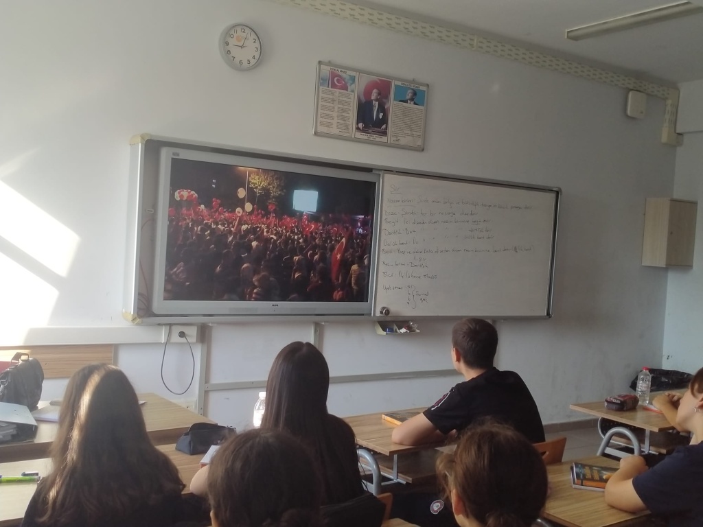 15 Temmuz Demokrasi ve Milli Birlik Günü ile ilgili sınıflarımızda öğrencilerimiz ile birlikte belgesel izlendi.